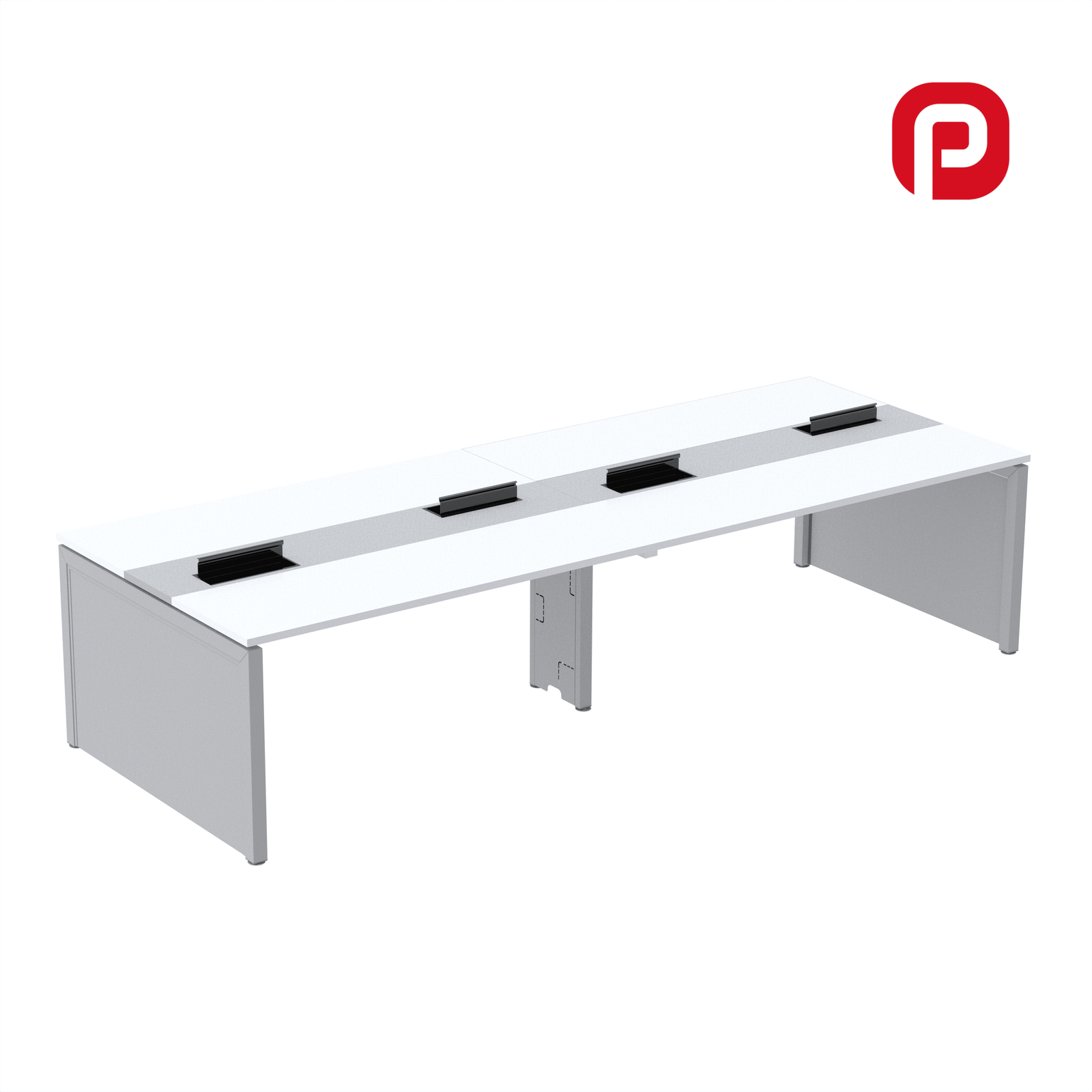 Plataforma modular para 4 usuários com estrutura em aço tubular anticorrosivo e pintura eletrostática a pó.