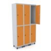✅ Roupeiro de aço montável com 6 portas sobrepostas, dividido em 3 vãos com varão para fechamento seguro