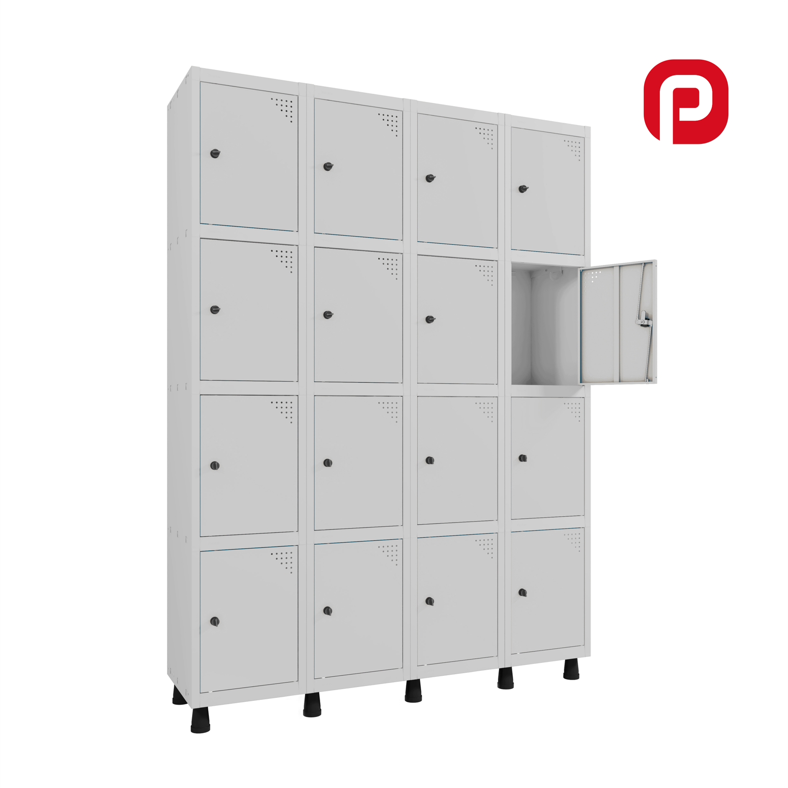 O Roupeiro de Aço GRP/F 504/16 é ideal para vestiários, escritórios e ambientes corporativos que necessitam de armazenamento seguro, durável e modular. Este modelo conta com 16 portas sobrepostas e montagem prática através de travas invertidas tipo “unha de gato”, dispensando parafusos.
