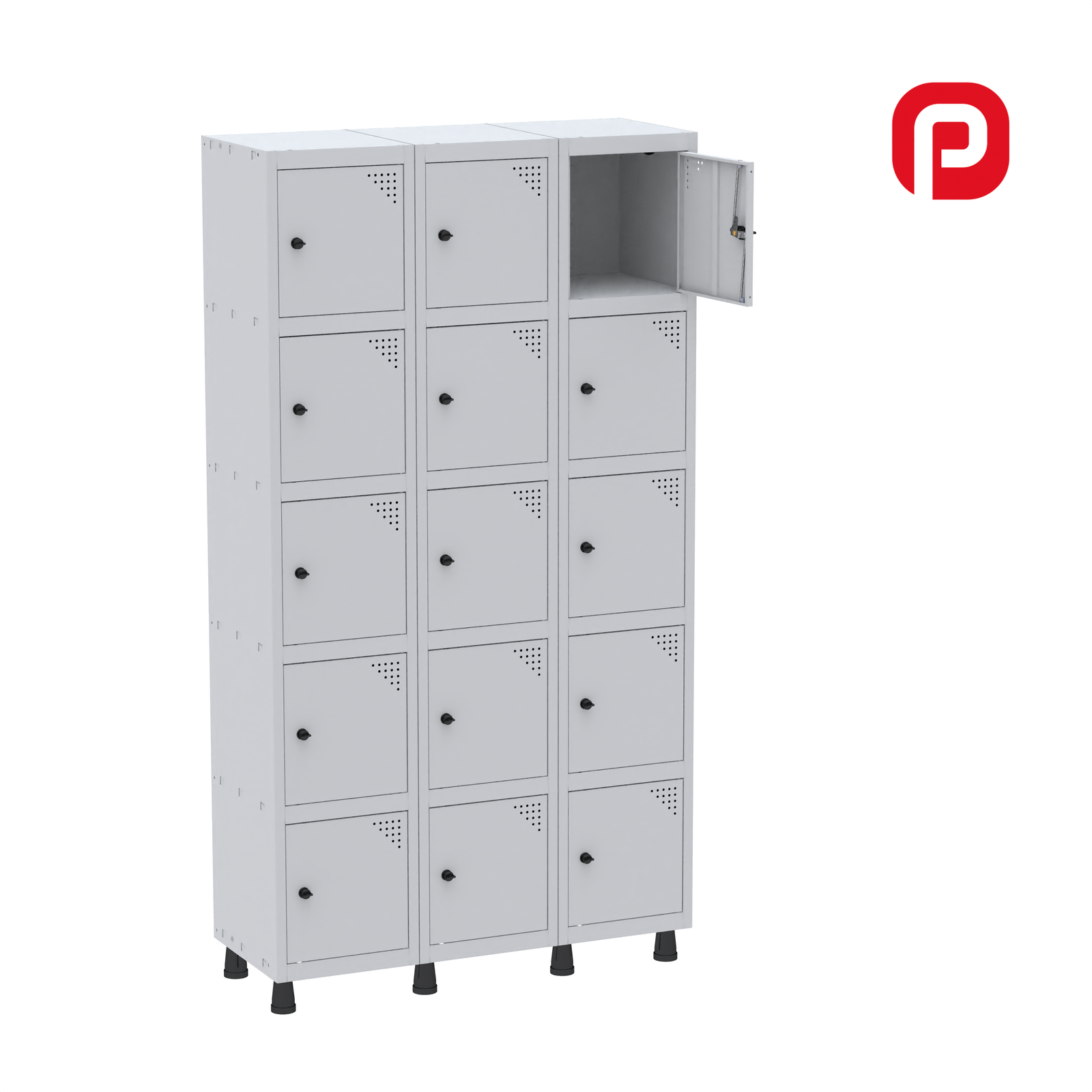 O Roupeiro de Aço GRP/F 503/15 é ideal para vestiários e ambientes corporativos, oferecendo organização, segurança e durabilidade. Composto por 1 módulo inicial e 2 complementos, totalizando 15 portas, este modelo combina robustez com facilidade de montagem.