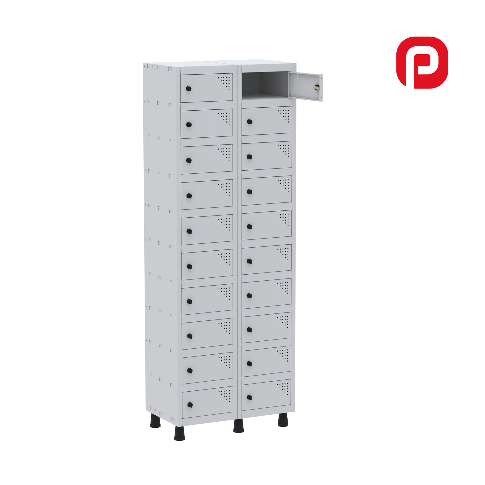 O Armário de Aço Porta Objetos GRP/F 502/20 é ideal para vestiários, ambientes corporativos e áreas de armazenamento que necessitam de organização prática e segura. Com 20 portas sobrepostas distribuídas em 2 módulos (1 módulo inicial + 1 módulo complemento), oferece máxima funcionalidade em um design robusto.