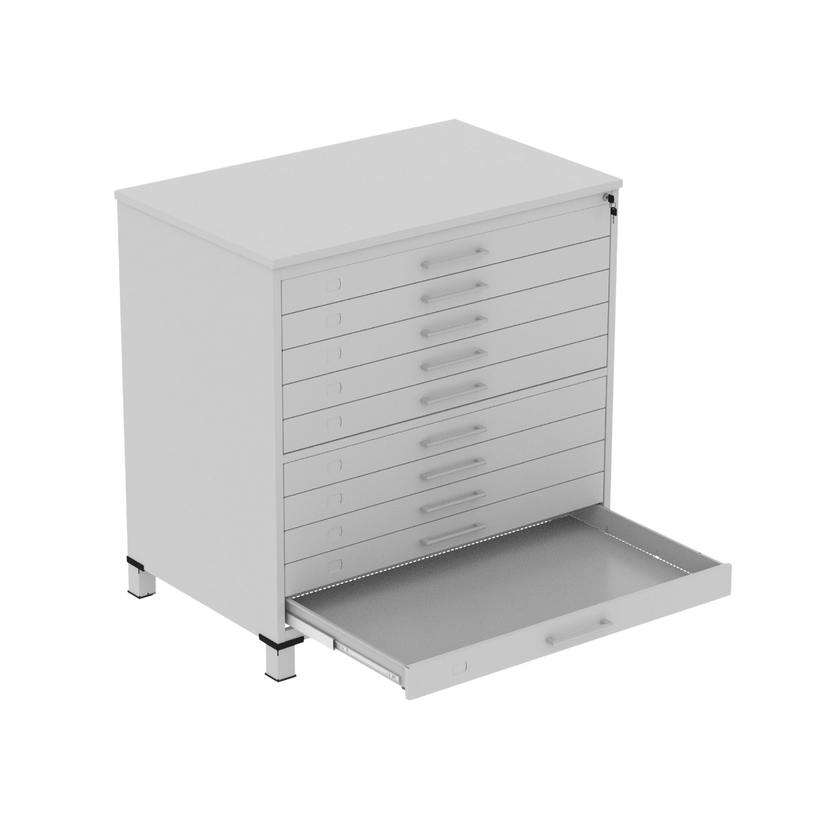 Organize mapas, projetos e documentos técnicos em formato A-1 com a Mapoteca de Aço 10 Gavetas. Ideal para escritórios de engenharia, arquitetura e ambientes corporativos, garantindo preservação e fácil acesso aos arquivos.