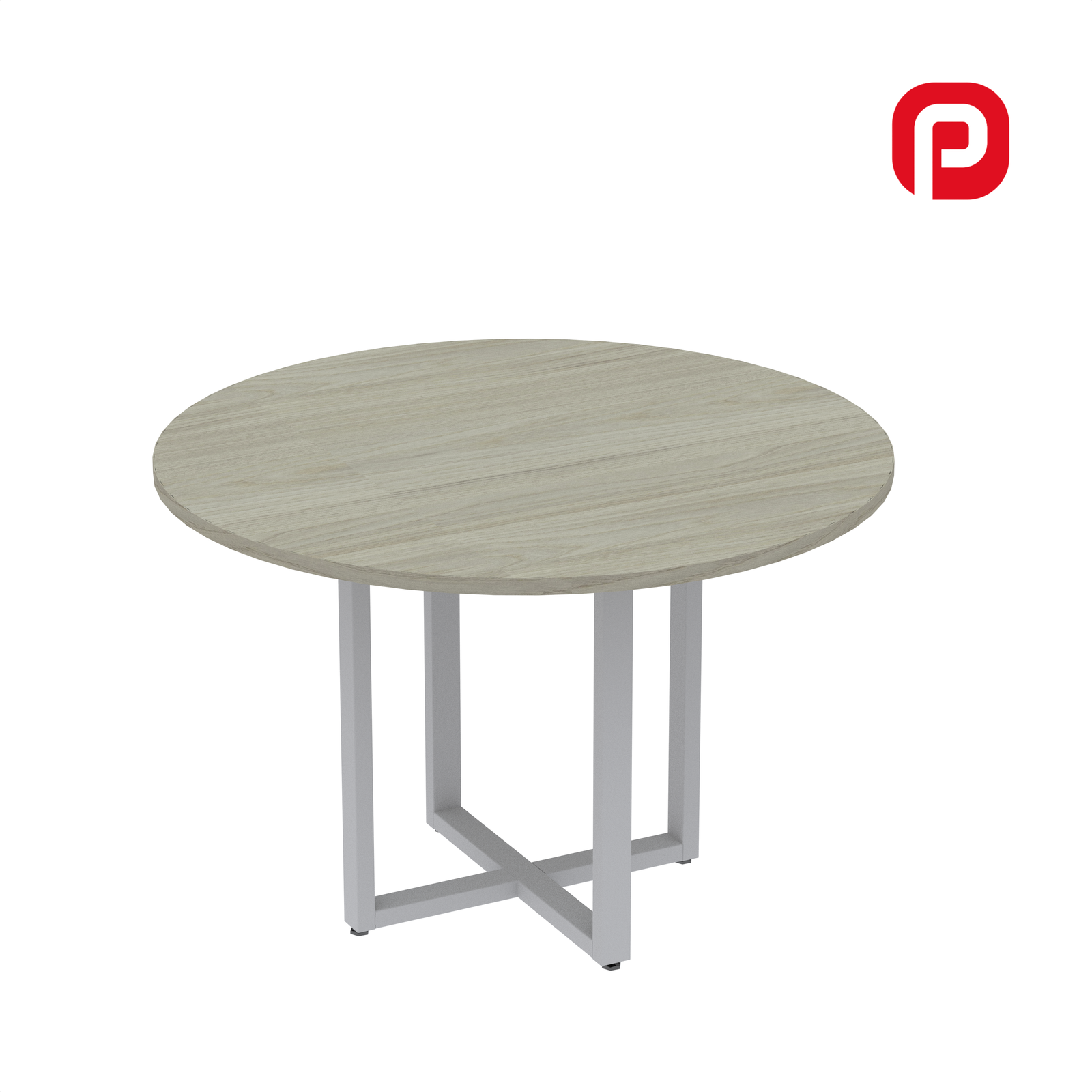 Esta mesa de reunião redonda oferece um design funcional e durável para ambientes corporativos.
