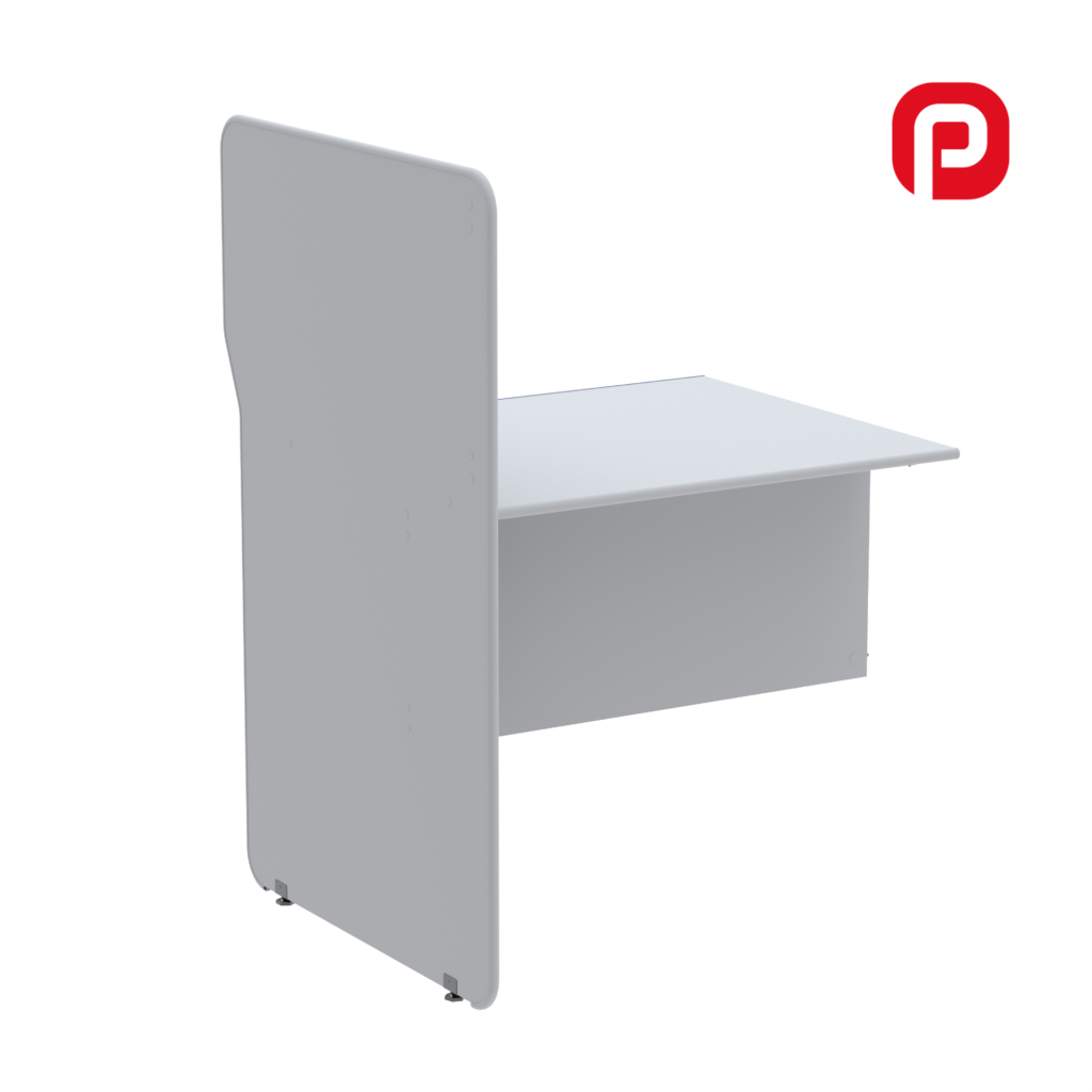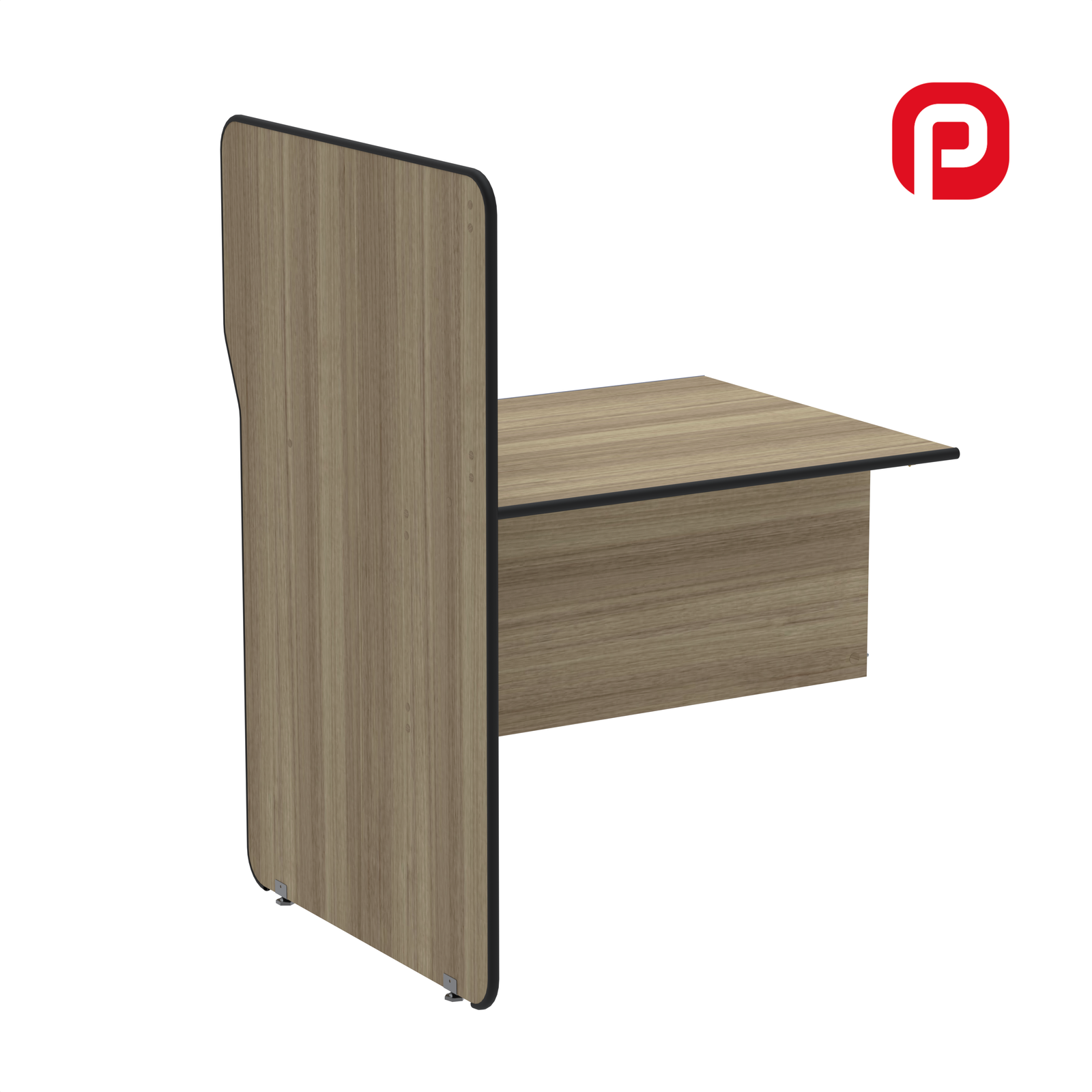 • Lateral em MDP BP com acabamento tipo “T”: 1200 mm (A) x 750 mm (P inferior – lado menor) / 800 mm (P superior – lado maior)